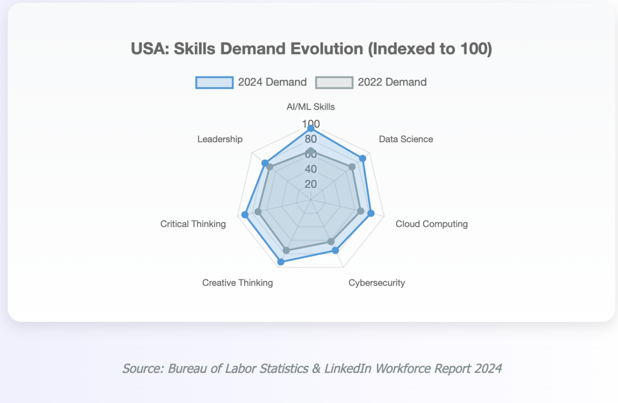 As AI reshapes the employment landscape, certain skills are becoming increasingly valuable across all three economies. These can be broadly categorised into technical AI skills, cognitive skills that complement AI, and uniquely human skills that AI cannot easily replicate.