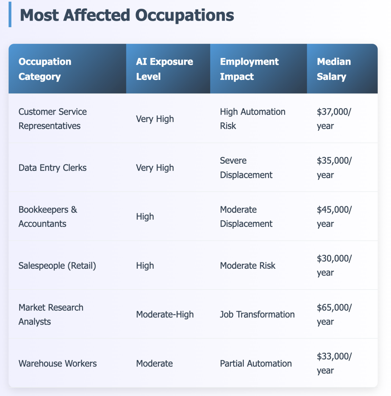 | Key Insight: An MIT and Boston University report projects that AI will replace as many as 2 million manufacturing workers by 2026. However, by 2030, at least 14% of employees globally will need to change careers—not necessarily lose jobs, but transition to new roles. |