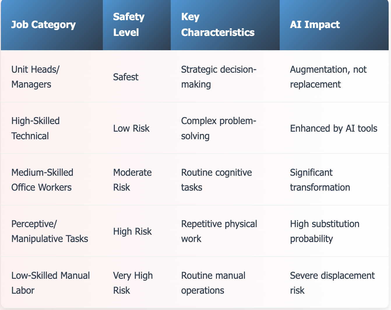The impact of AI on employment varies dramatically across these three economies, shaped by their unique economic structures, labour force compositions, technological capabilities, and policy frameworks. Understanding these differences is crucial for developing effective responses to AI-driven disruption.