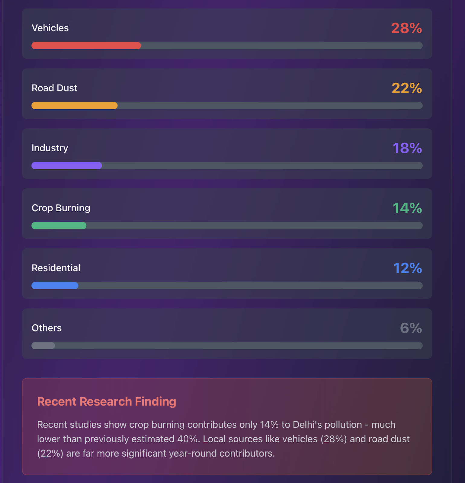 - Addressing Local Sources: With vehicles contributing 28% and road dust 22% of pollution, local action must take priority. This means aggressive expansion of public transportation, strict enforcement of emission standards, promotion of electric vehicles, better road maintenance to reduce dust, and restrictions on private vehicle use during high pollution periods.