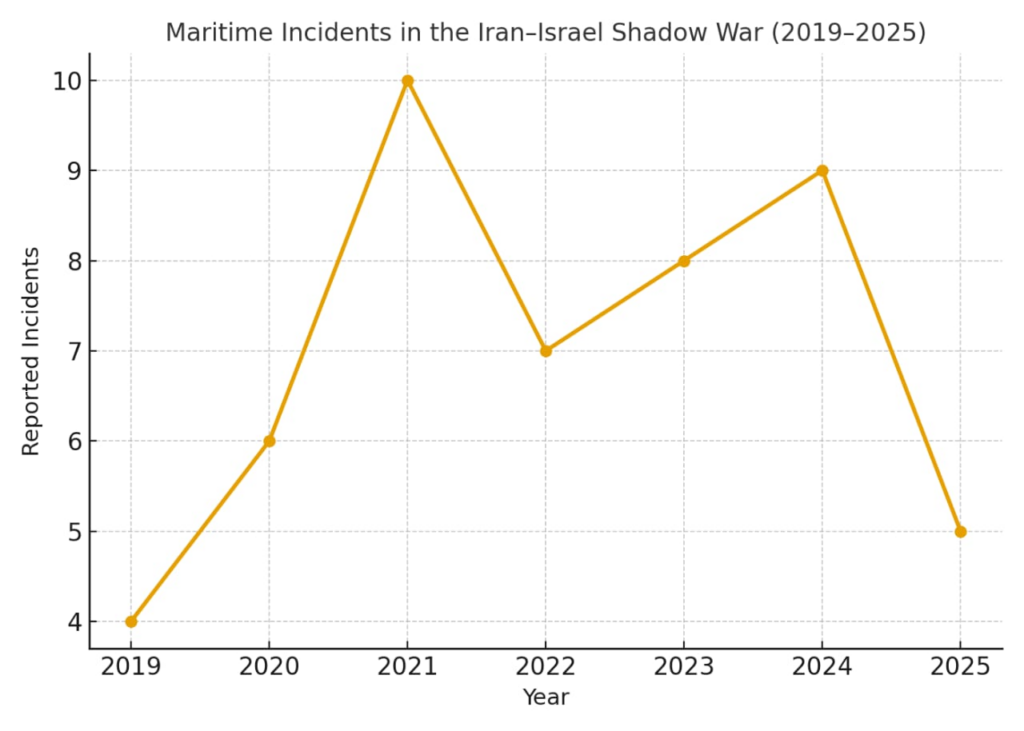 - Since 2019, Israel and Iran have engaged in a cycle of escalatory attacks against merchant shipping in the Gulf of Oman and Eastern Mediterranean.