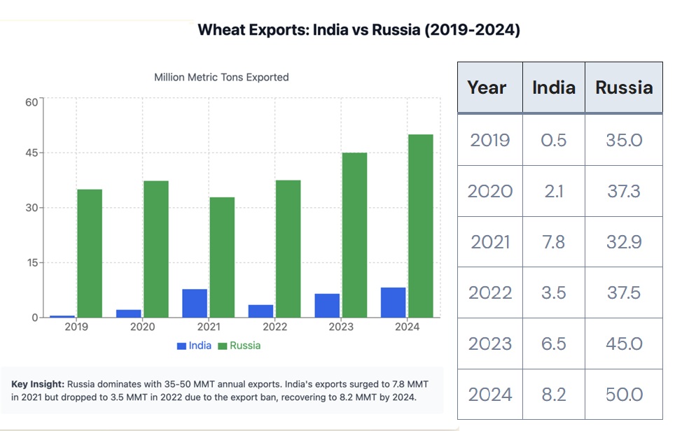 The India-Russia wheat competition highlights how geopolitics in the 21st century is increasingly defined by the control of resources, not military power. With populations expanding, climates changing, and nations looking for diversification from China-based supply chains, agricultural goods—especially commodity grains—have themselves become tools of statecraft as valuable as sanctions or security assurances.