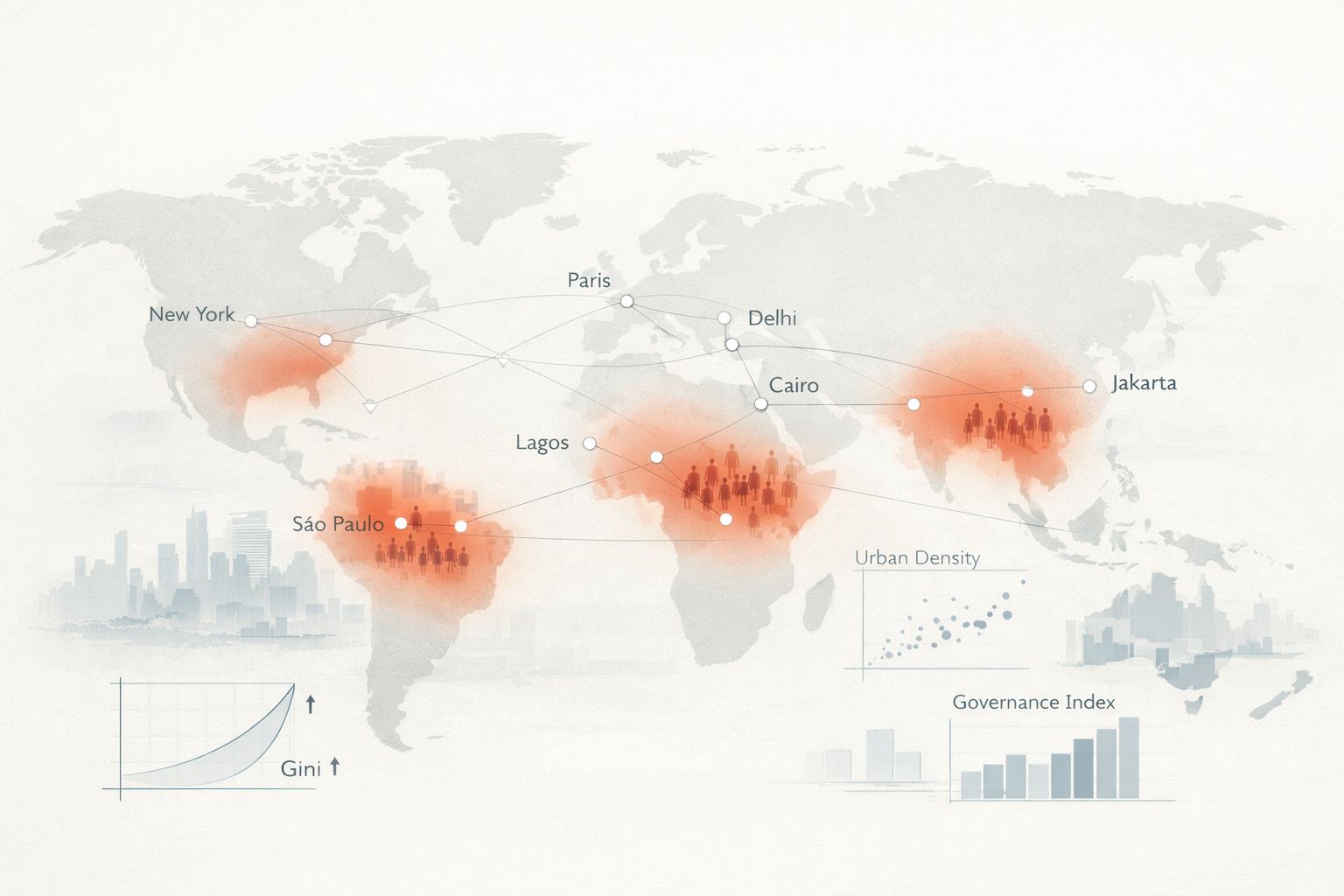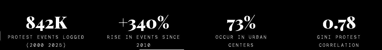 • Across 25 years of data, a structural grammar of protest emerges: inequality provides the fuel; governance failure, the spark; urban density, the oxygen.